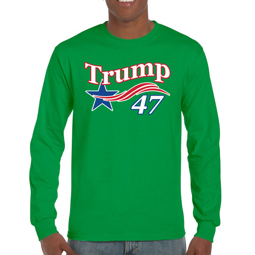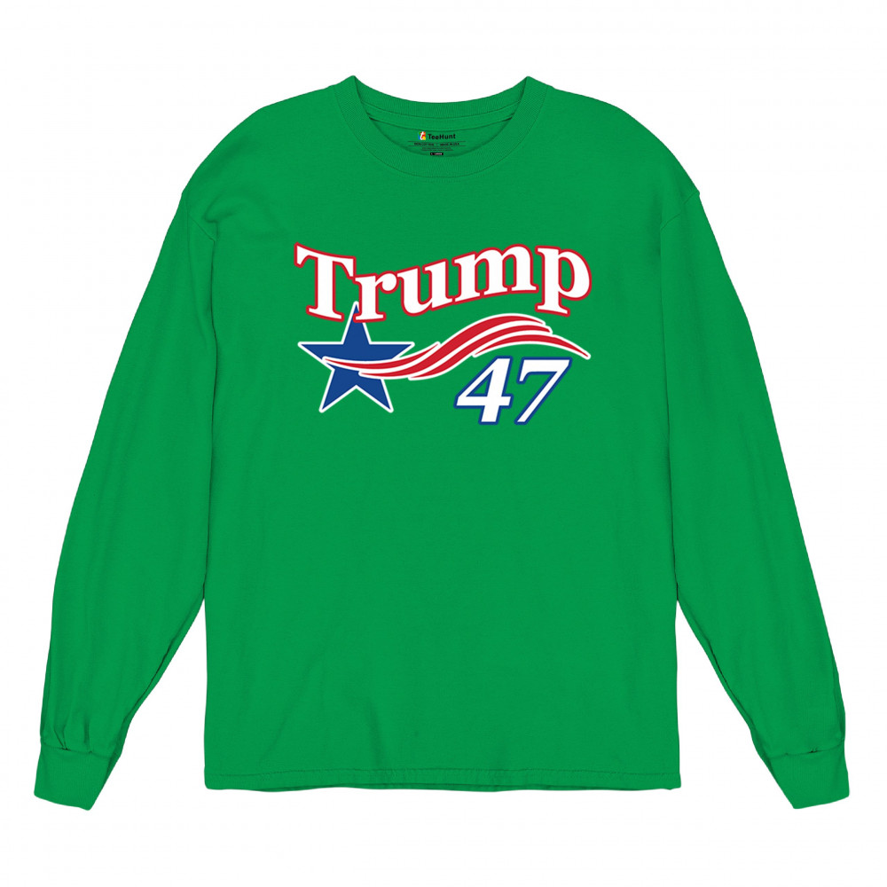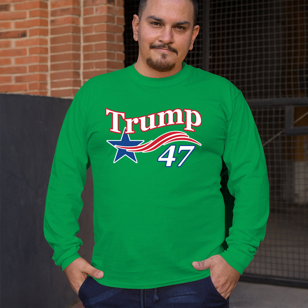 "Trump 47" design for patriotic Trump supporters, celebrating conservative values, Red Wave, and America First with pride and unity for the future.