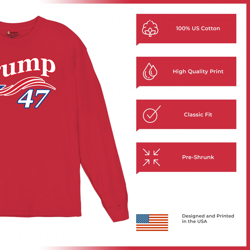 "Trump 47" design for patriotic Trump supporters, celebrating conservative values, Red Wave, and America First with pride and unity for the future.