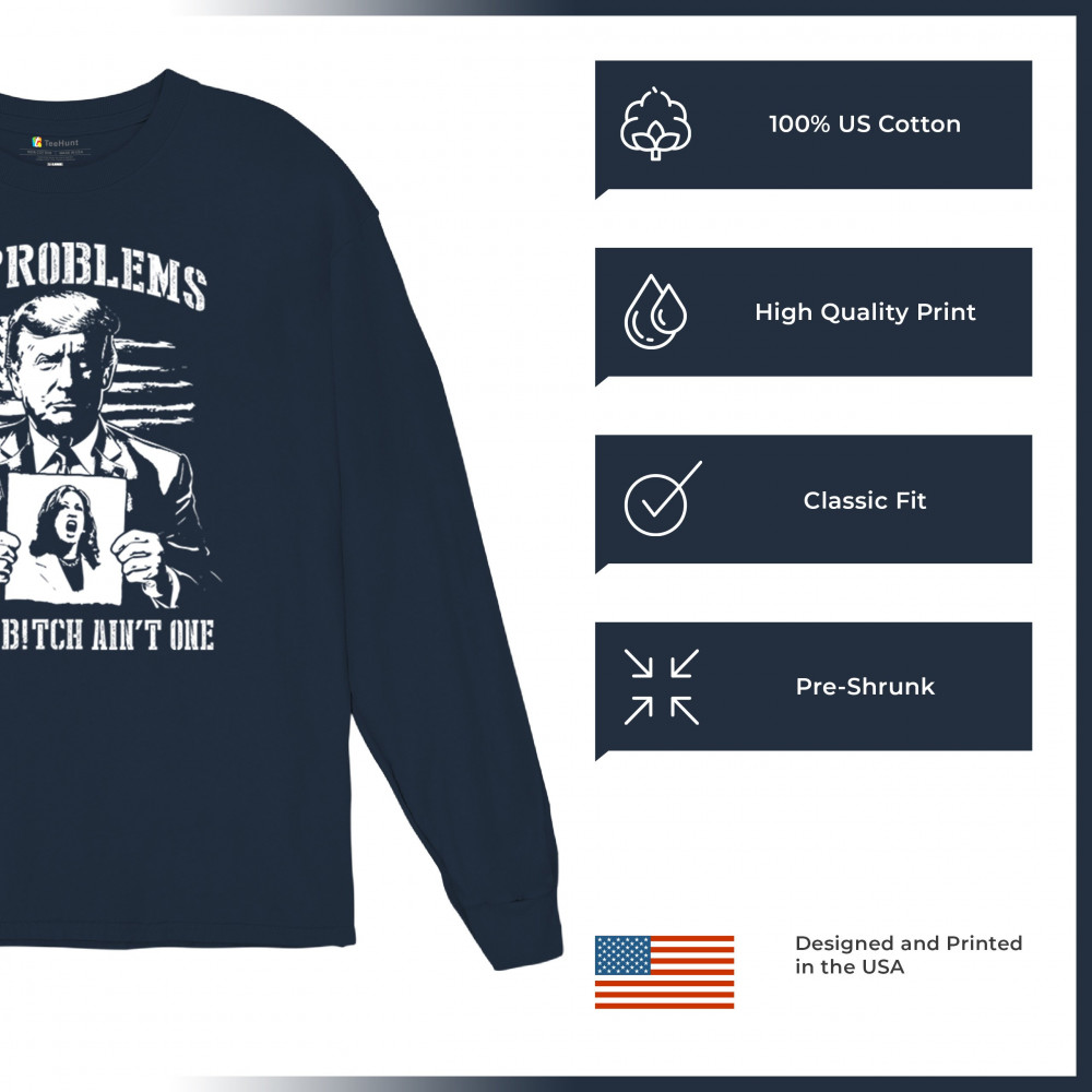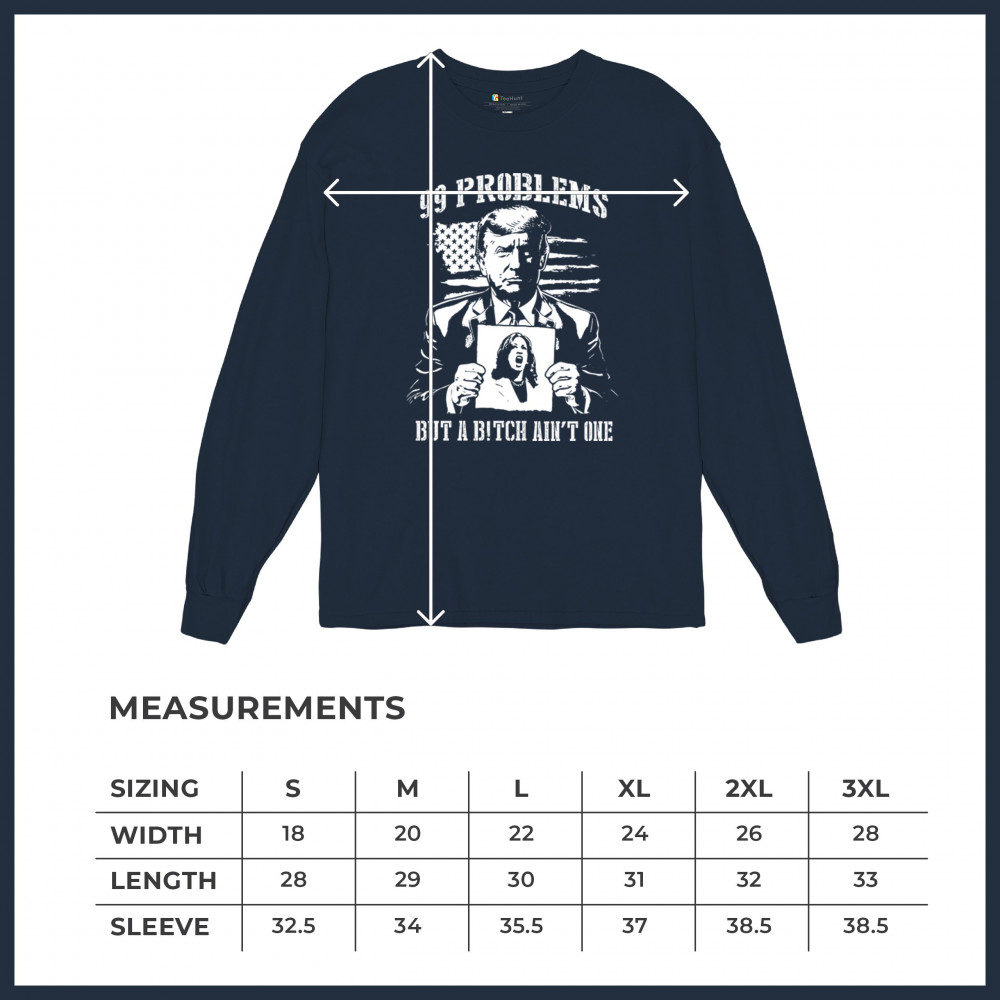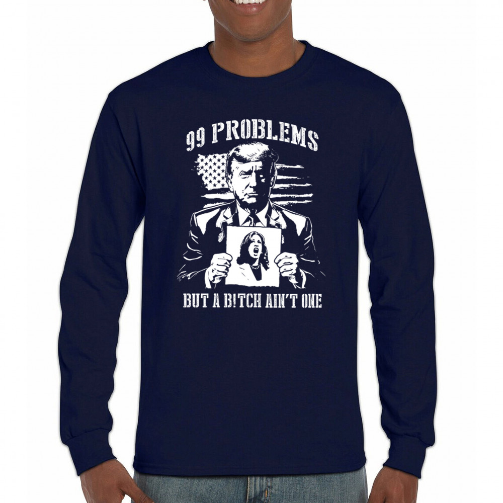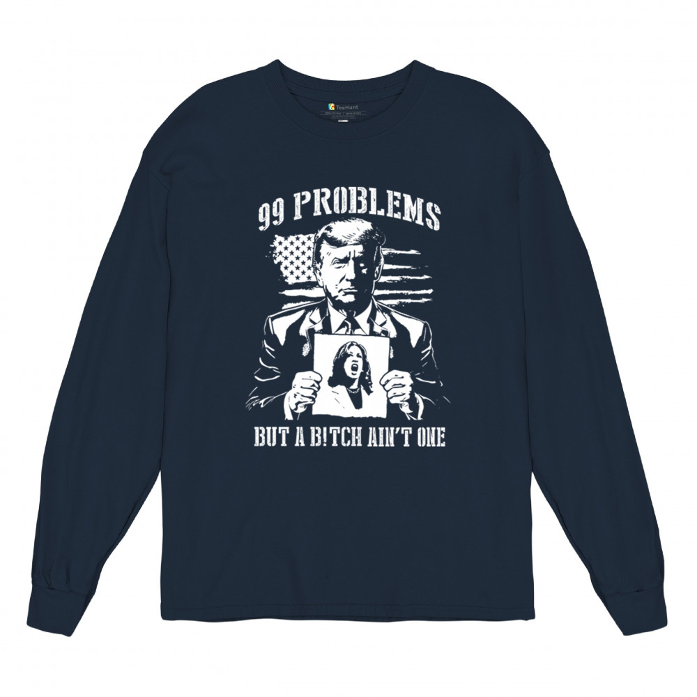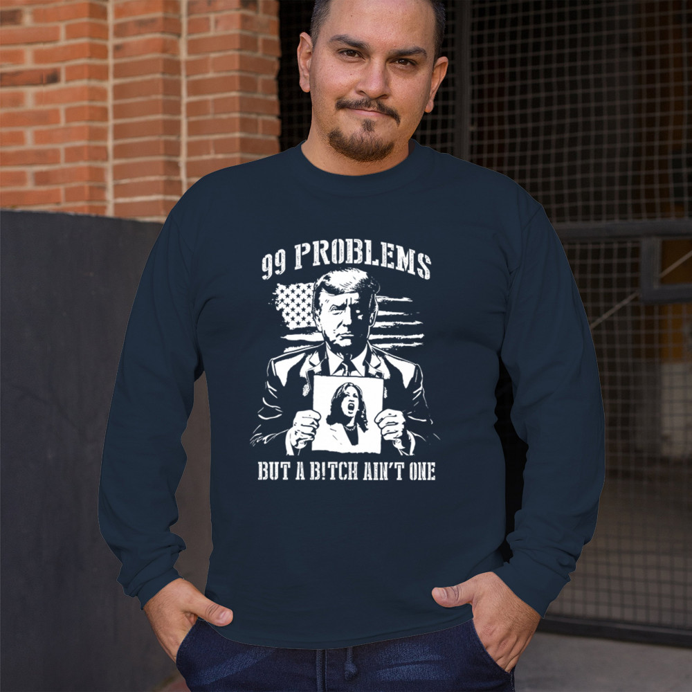Bold conservative "99 Problems But a B*tch Ain’t One" design featuring Donald J. Trump and an American flag. Perfect for proud Republicans and patriots.