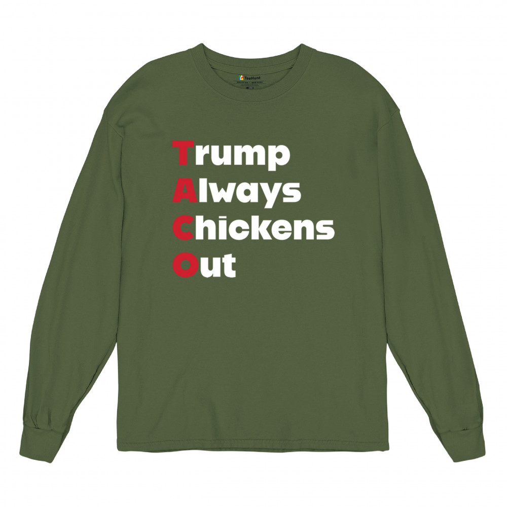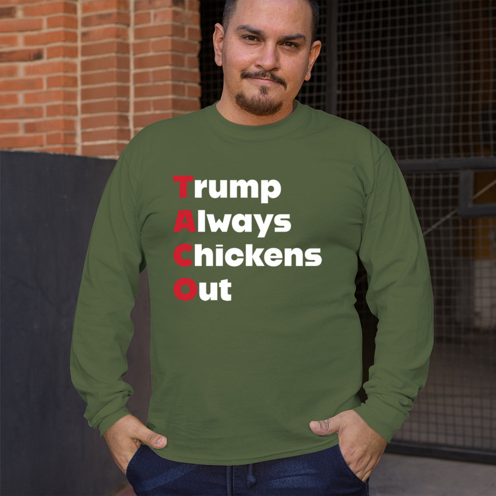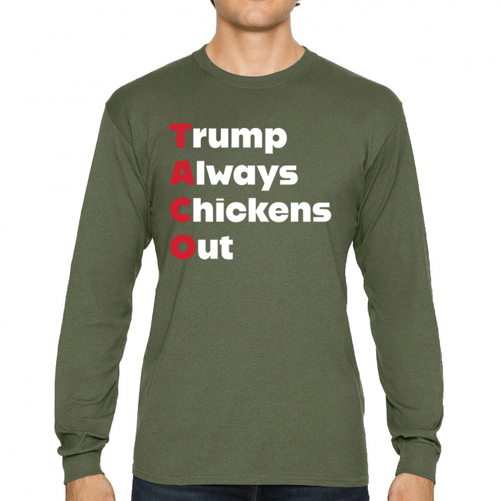 Trump Always Chickens Out is bold protest fashion for anti-dictator activists, political satire fans, and no kings supporters.