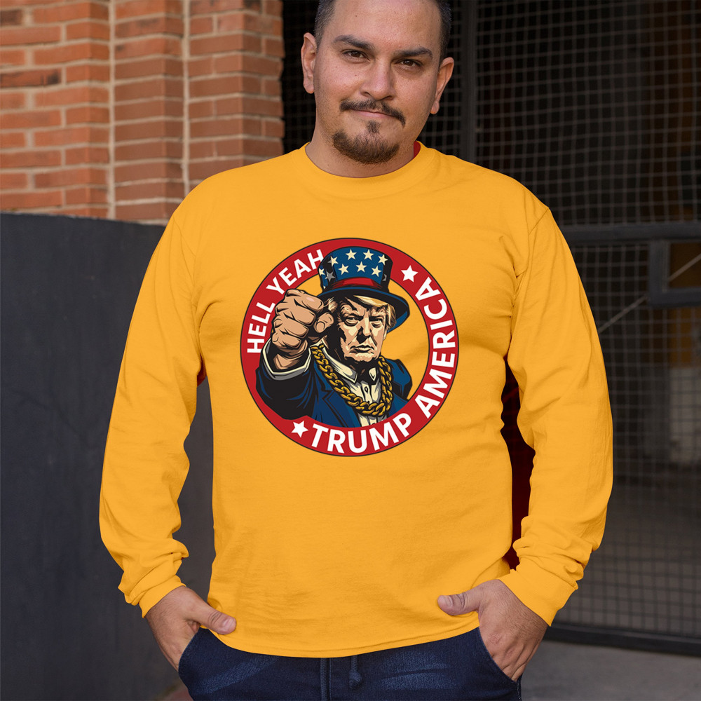 Support Donald Trump with the "Hell Yeah Trump America" design, representing conservative values, strength, and patriotism.