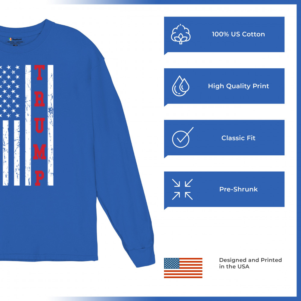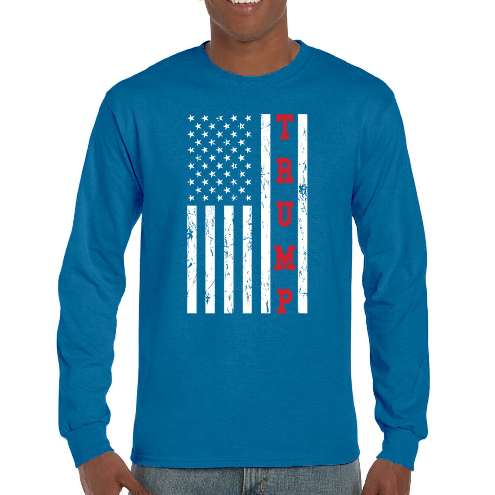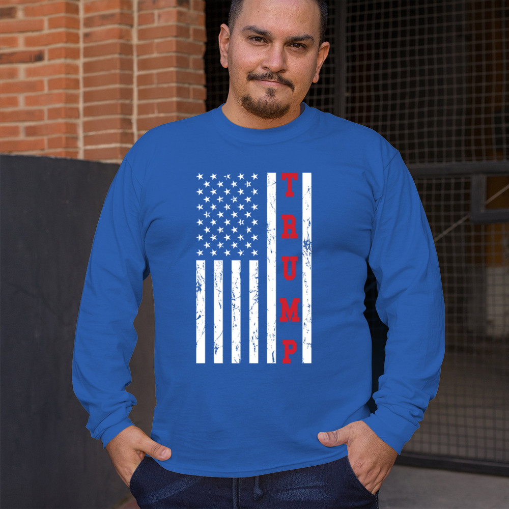 Declare your allegiance to Donald Trump and the Republican cause with our Trump 2024 Flag tee. Featuring a striking American Flag backdrop and 'Trump 2024' emblazoned proudly, this shirt embodies the spirit of Make America Great Again. Send a clear messag