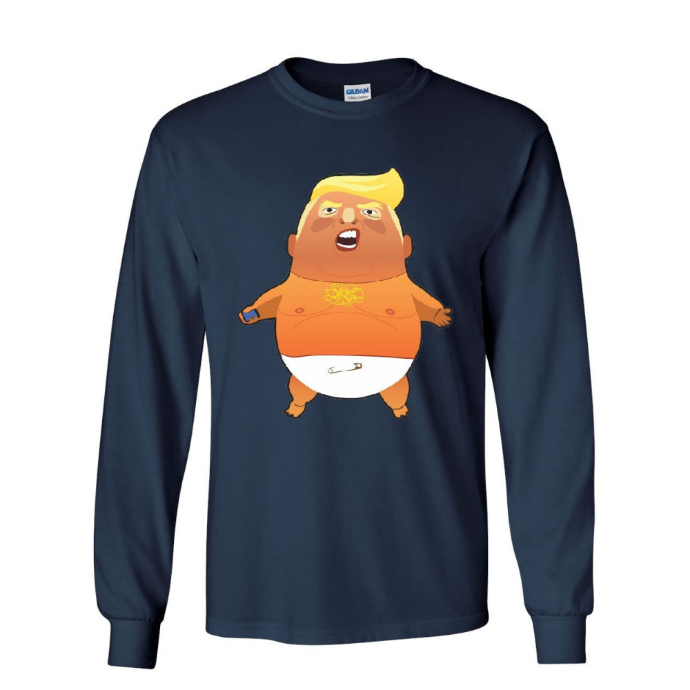 TRUMP BABY BLIMP BALOON trump baby baloon long sleeve t-shirt anti trump funny impeach resist resign tee navy blue