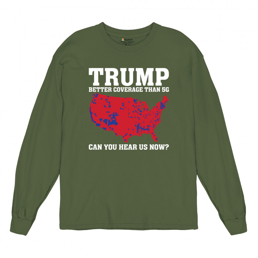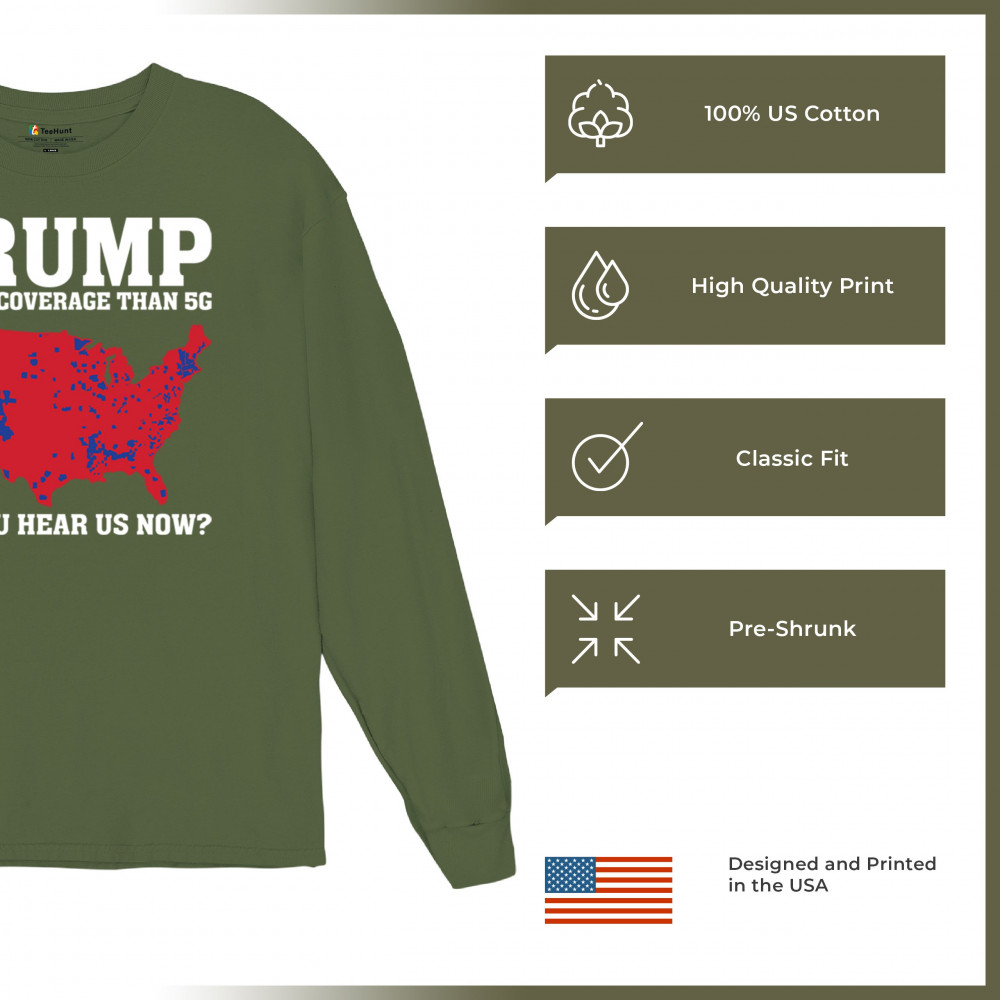 "Trump: Better Coverage Than 5G" design celebrates Republican victory and America First values. Perfect for rallies, events, or gifting patriots.