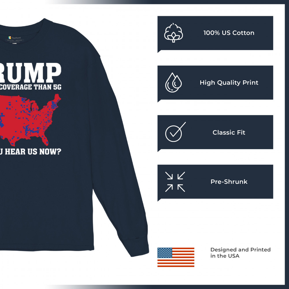 "Trump: Better Coverage Than 5G" design celebrates Republican victory and America First values. Perfect for rallies, events, or gifting patriots.