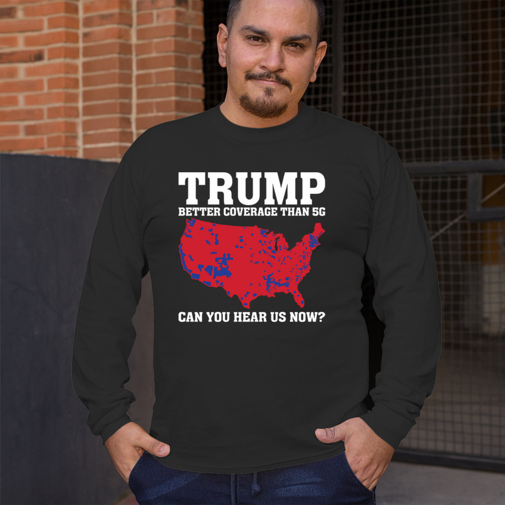 "Trump: Better Coverage Than 5G" design celebrates Republican victory and America First values. Perfect for rallies, events, or gifting patriots.