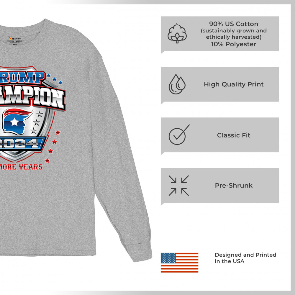 Celebrate Trump’s return with the "Trump Champion 2024" design. Perfect for patriots, conservatives, and those supporting 4 More Years of victory!