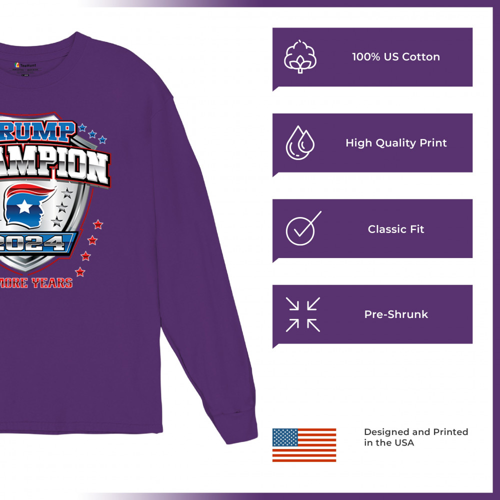 Celebrate Trump’s return with the "Trump Champion 2024" design. Perfect for patriots, conservatives, and those supporting 4 More Years of victory!