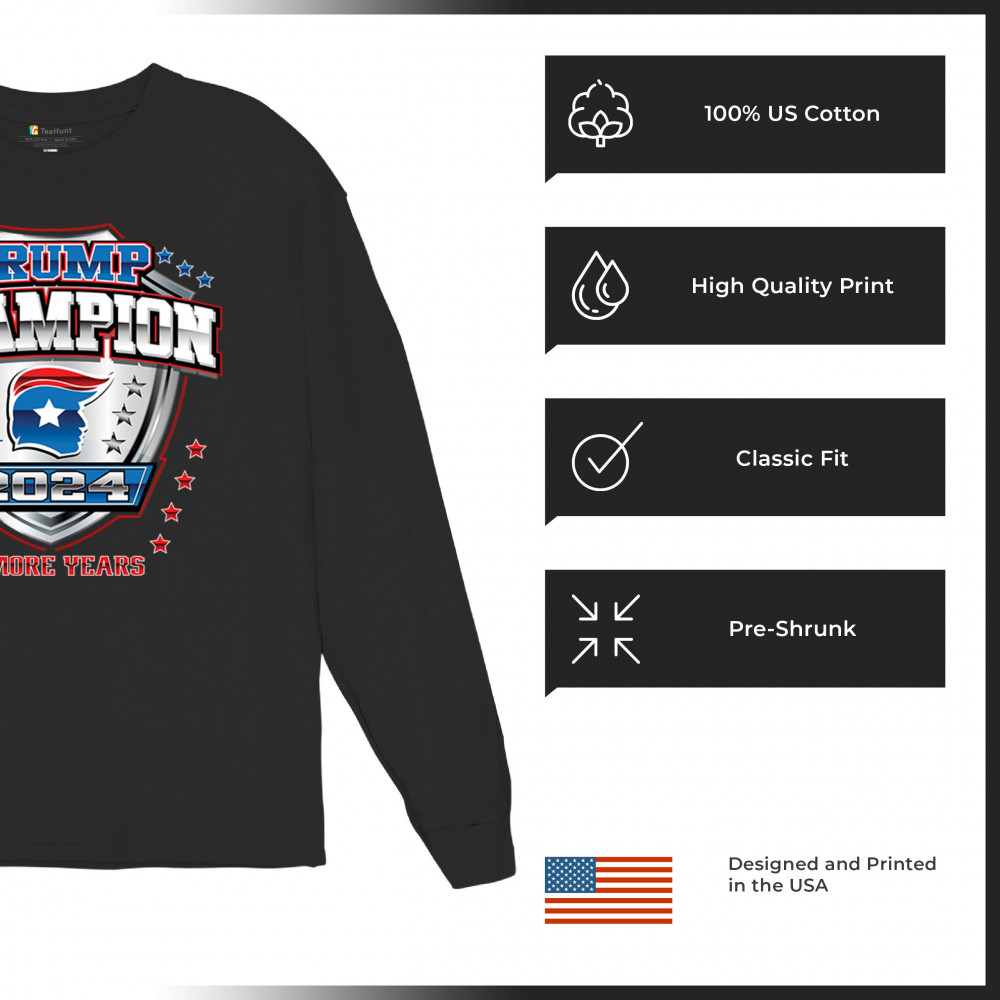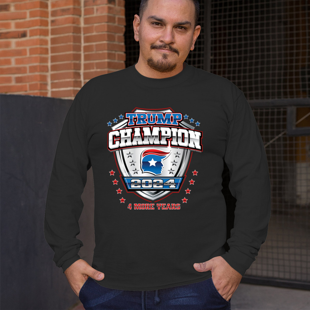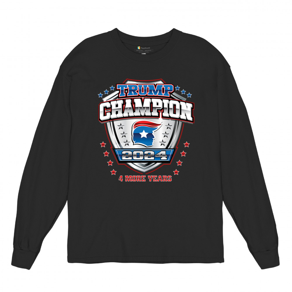 TRUMP CHAMPION 2024 4 MORE YEARS long sleeve t-shirt maga 47th president vance black