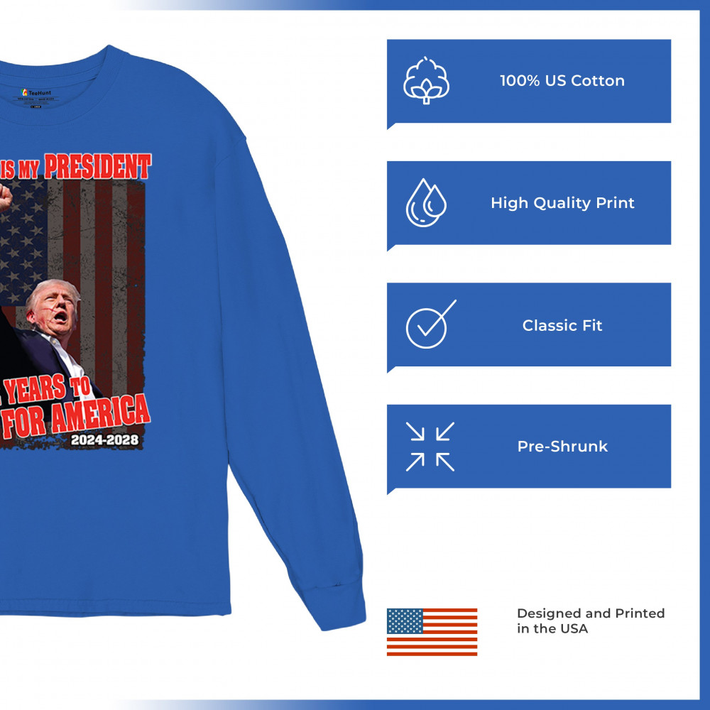 Celebrate the unwavering commitment to American values with this "Trump is My President" design, representing the fight for a prosperous nation from 2024-2028. Ideal for proud Republicans, conservatives, and America First supporters, this design embodies the spirit of victory, patriotism, and resilience. Embrace the Red Wave, honor the American flag, and let everyone know you stand strong for Donald J. Trump as the 47th President.