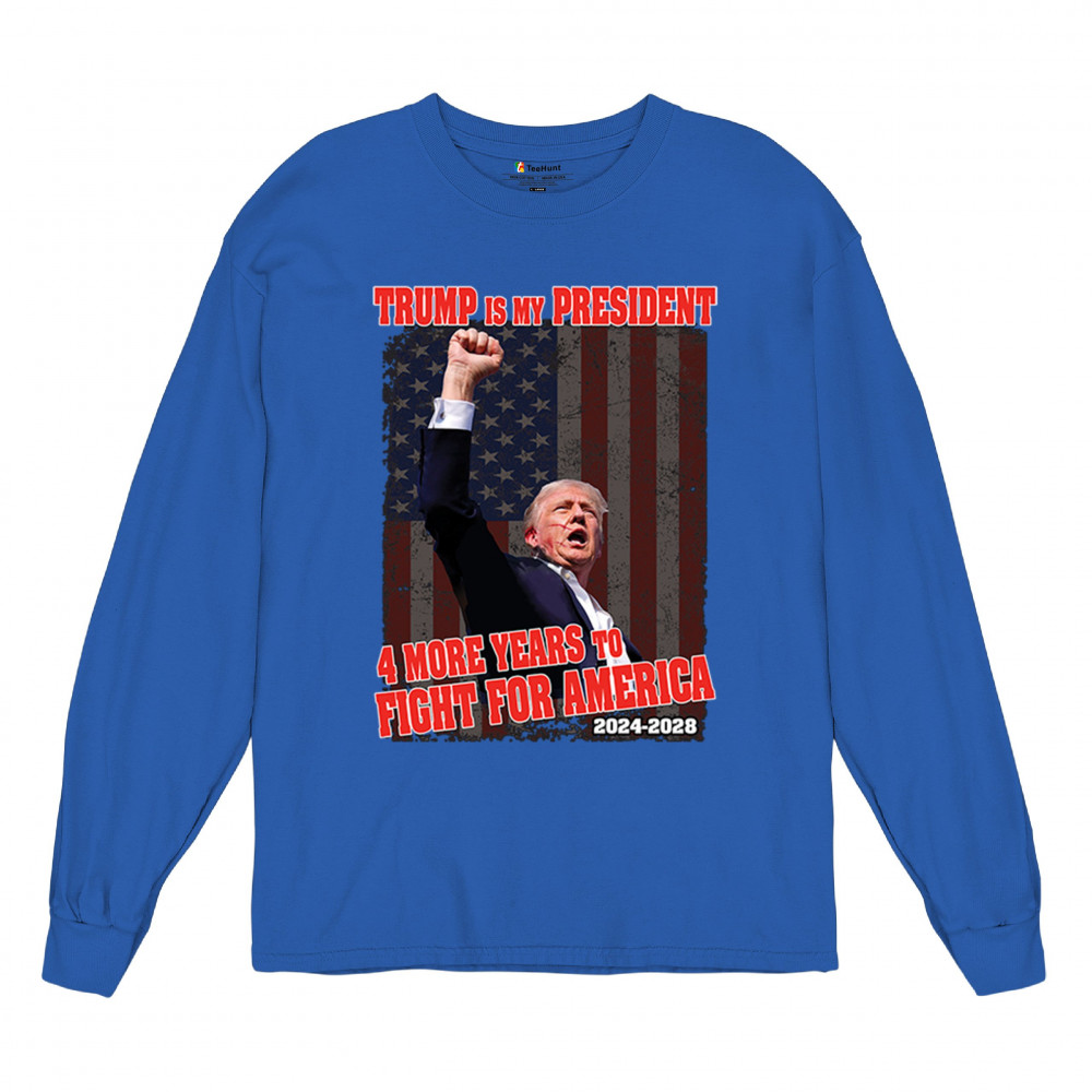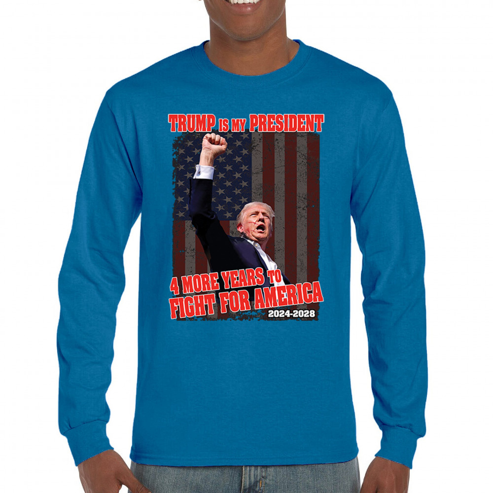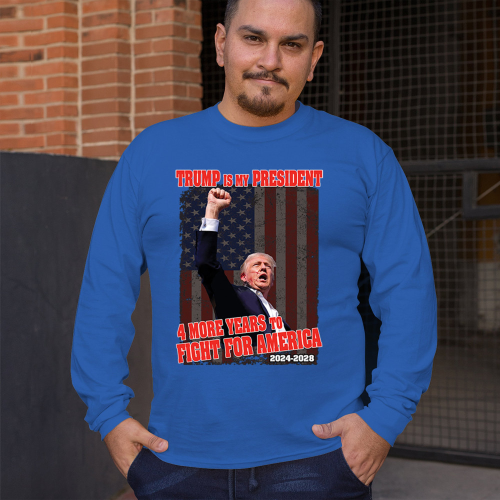 Show your support for Trump with the "4 More Years to Fight for America" design. Perfect for patriots, conservatives, and America First advocates.