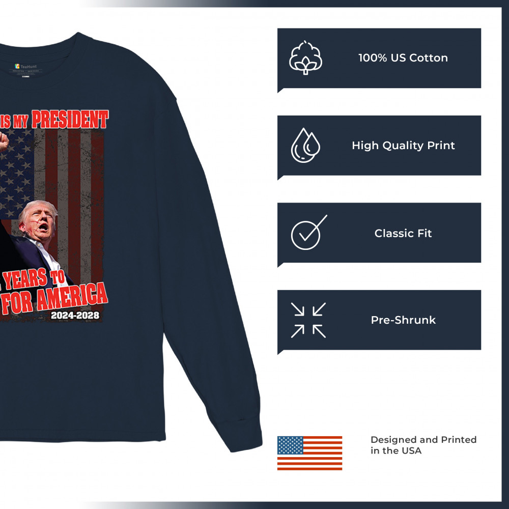 Celebrate the unwavering commitment to American values with this "Trump is My President" design, representing the fight for a prosperous nation from 2024-2028. Ideal for proud Republicans, conservatives, and America First supporters, this design embodies the spirit of victory, patriotism, and resilience. Embrace the Red Wave, honor the American flag, and let everyone know you stand strong for Donald J. Trump as the 47th President.