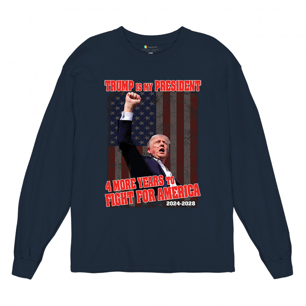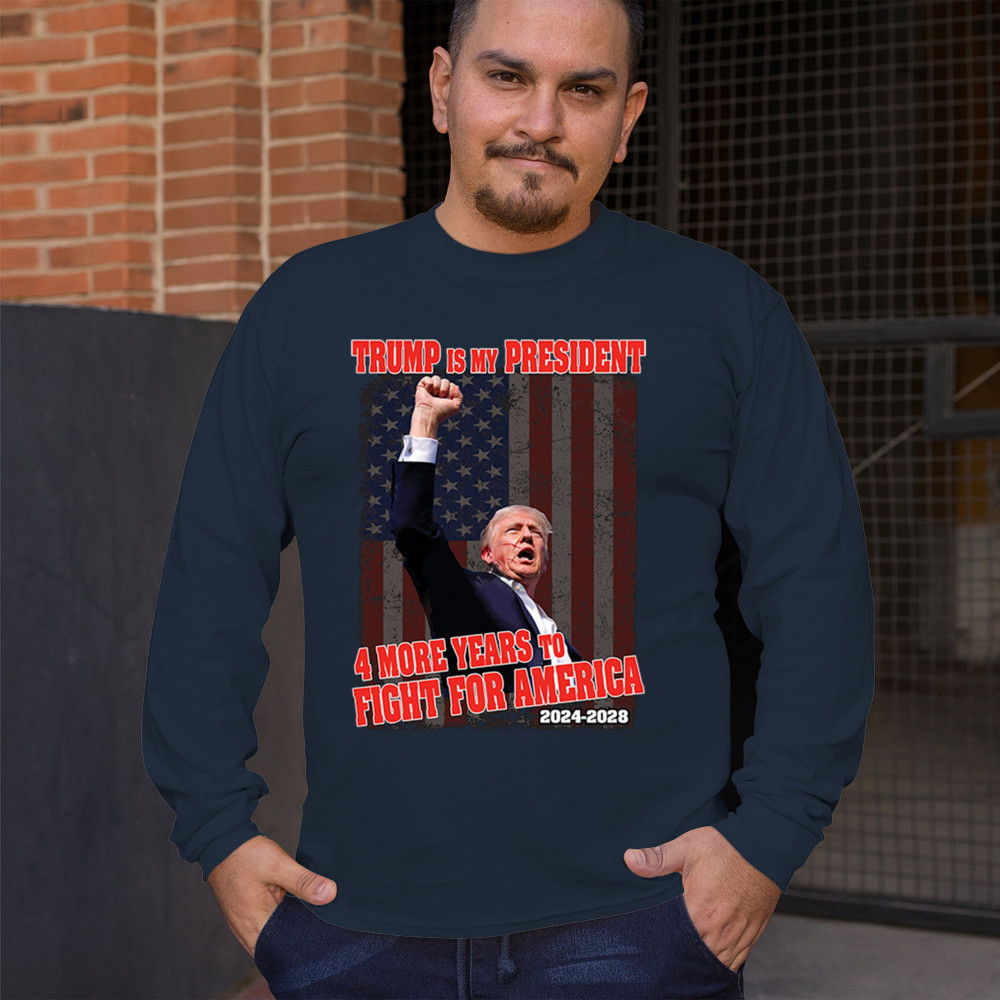 Show your support for Trump with the "4 More Years to Fight for America" design. Perfect for patriots, conservatives, and America First advocates.