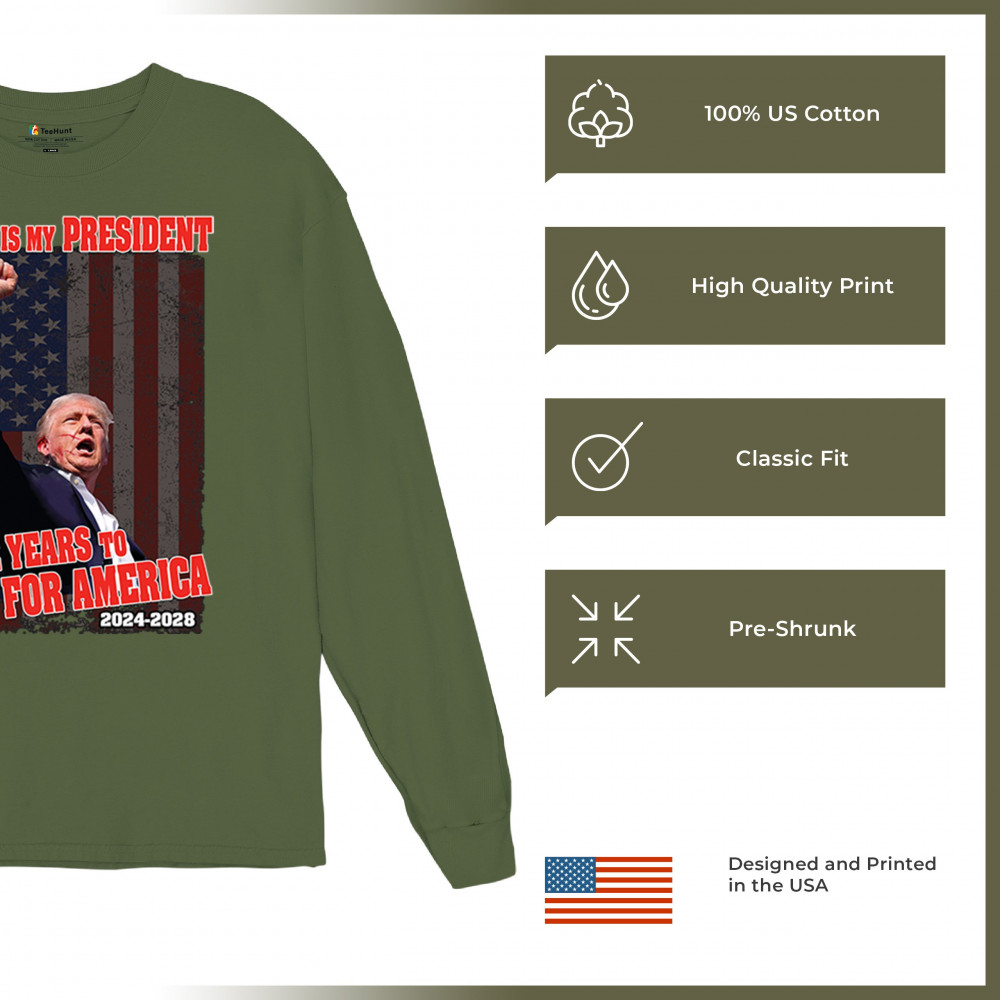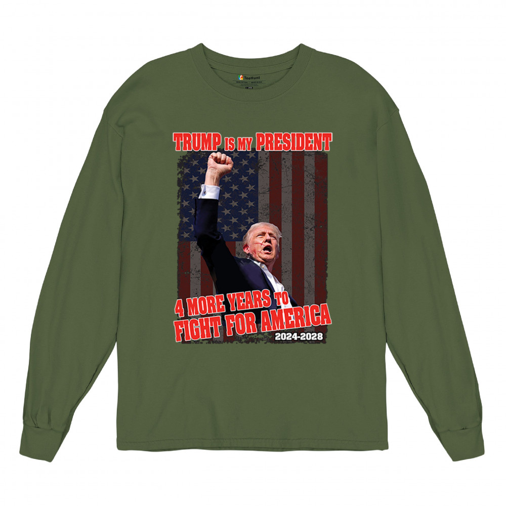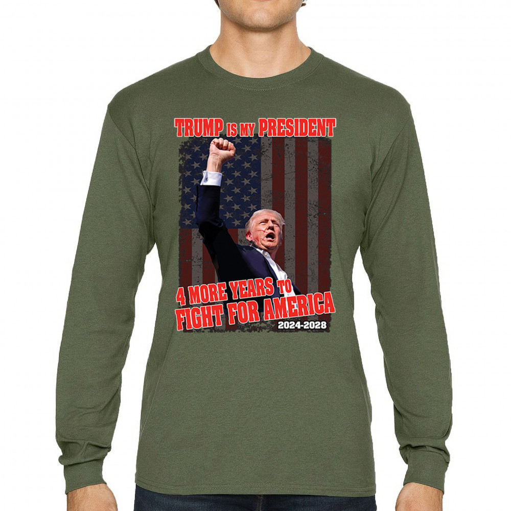 Show your support for Trump with the "4 More Years to Fight for America" design. Perfect for patriots, conservatives, and America First advocates.