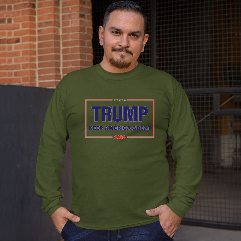 TRUMP KEEP AMERICA GREAT 2024 long sleeve t-shirt re-elect donald trump maga military green
