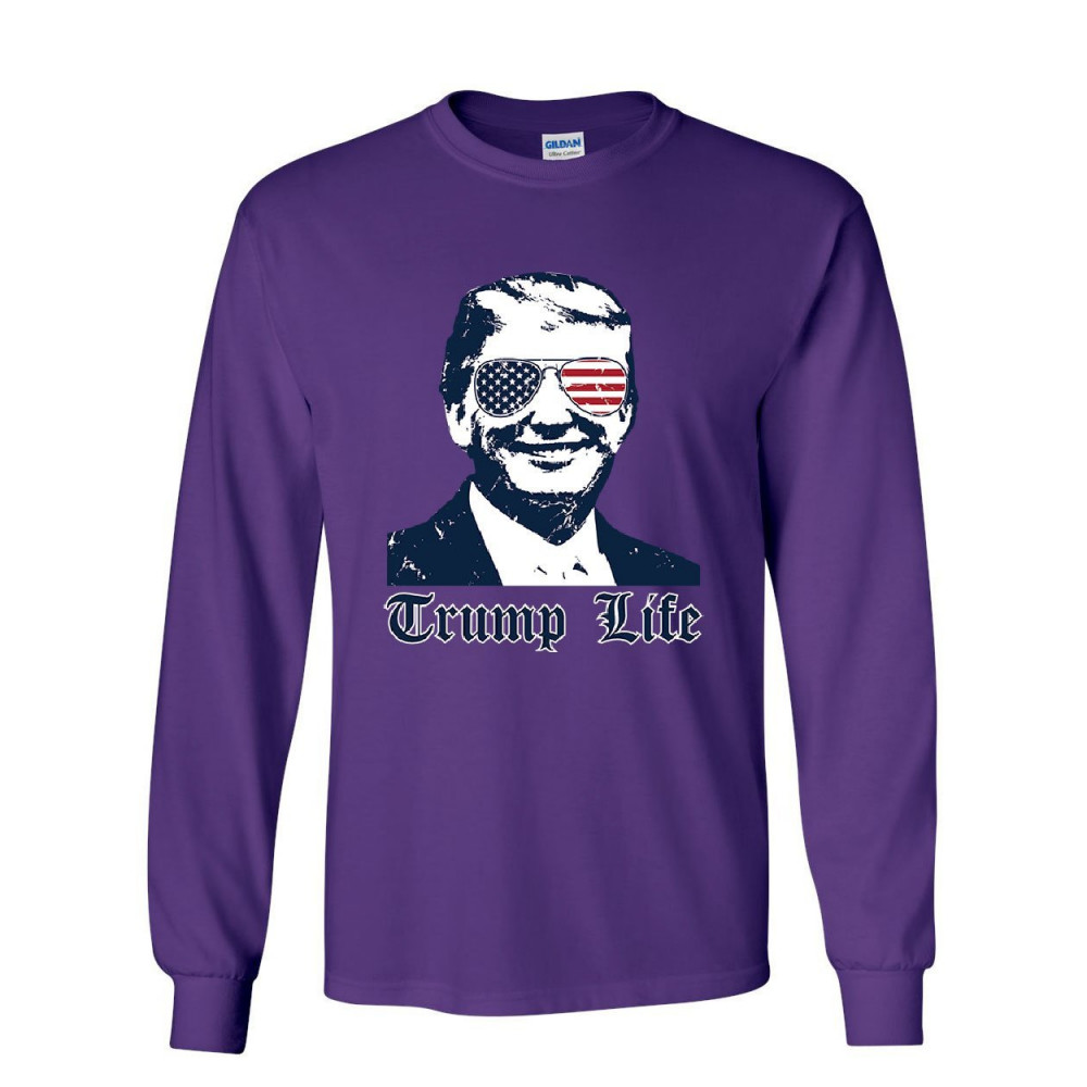 TRUMP LIFE long sleeve t-shirt 45th maga keep america great thug life parody tee purple
