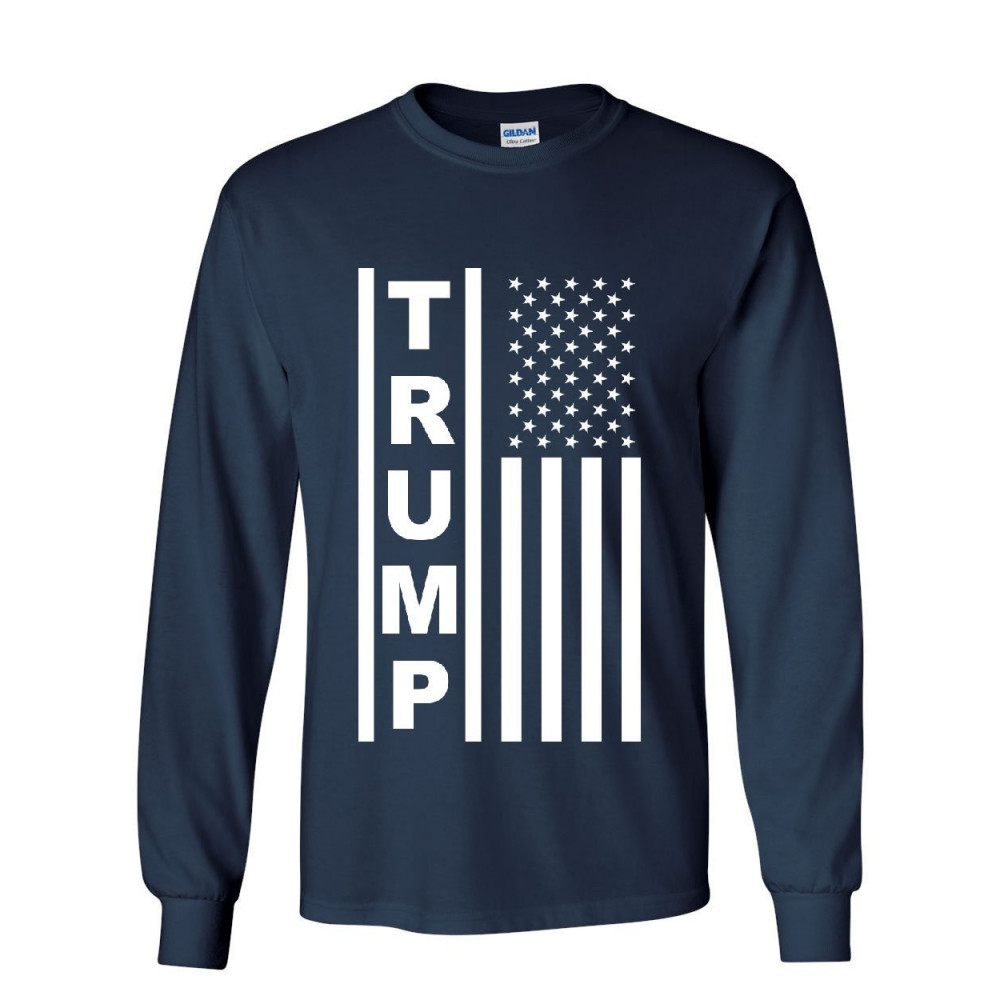 TRUMP FLAG MAGA REPUBLICAN long sleeve tee president usa political navy blue