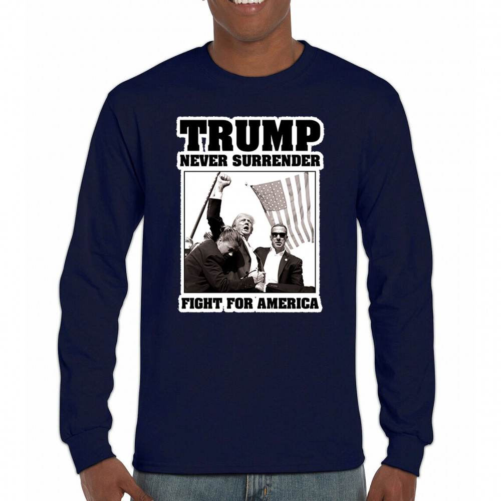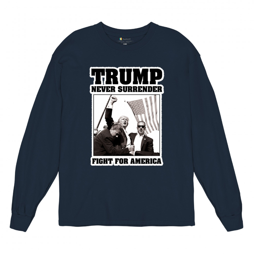 Express your unwavering support with the bold "Trump Never Surrender" design, perfect for rallies and everyday wear. Durable and stylish, show your patriotism proudly.