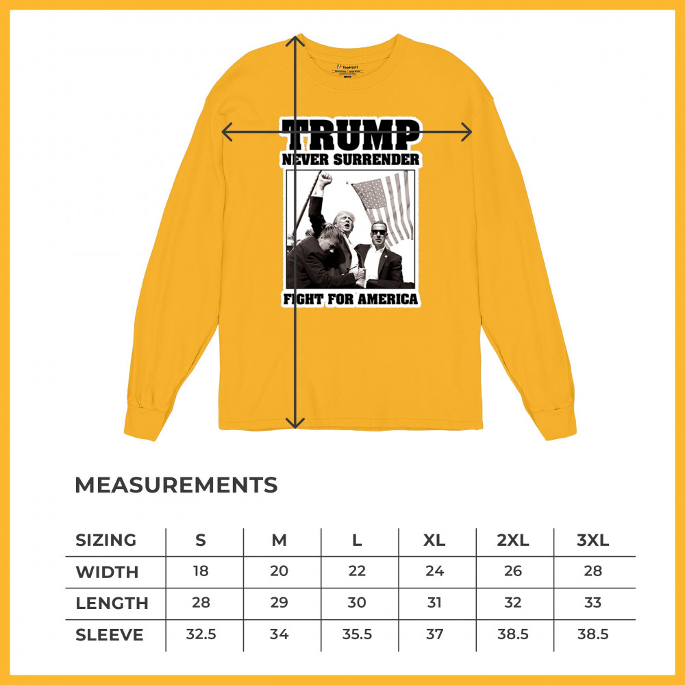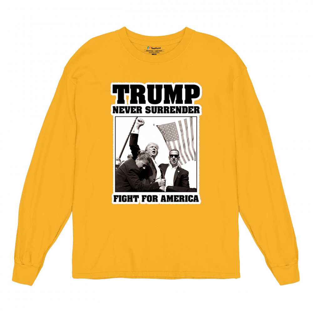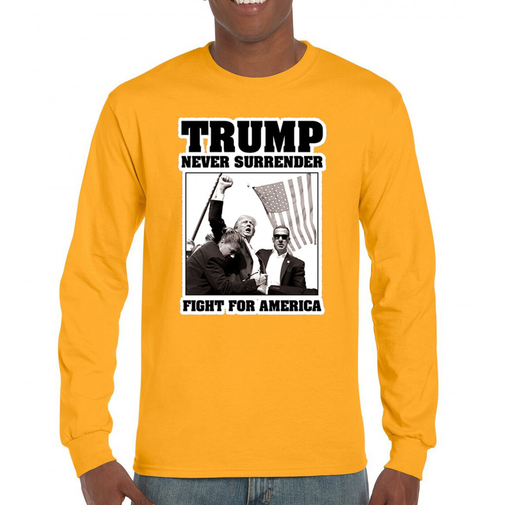 Express your unwavering support with the bold "Trump Never Surrender" design, perfect for rallies and everyday wear. Durable and stylish, show your patriotism proudly.