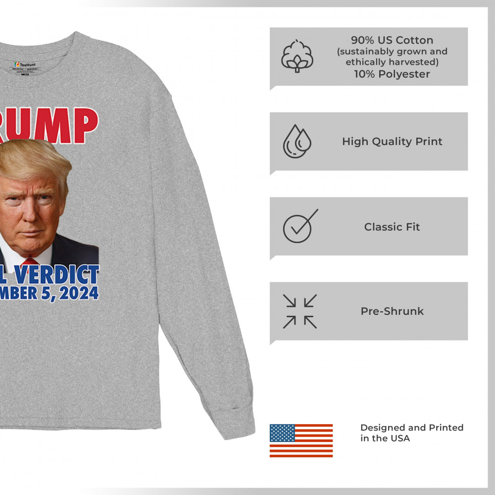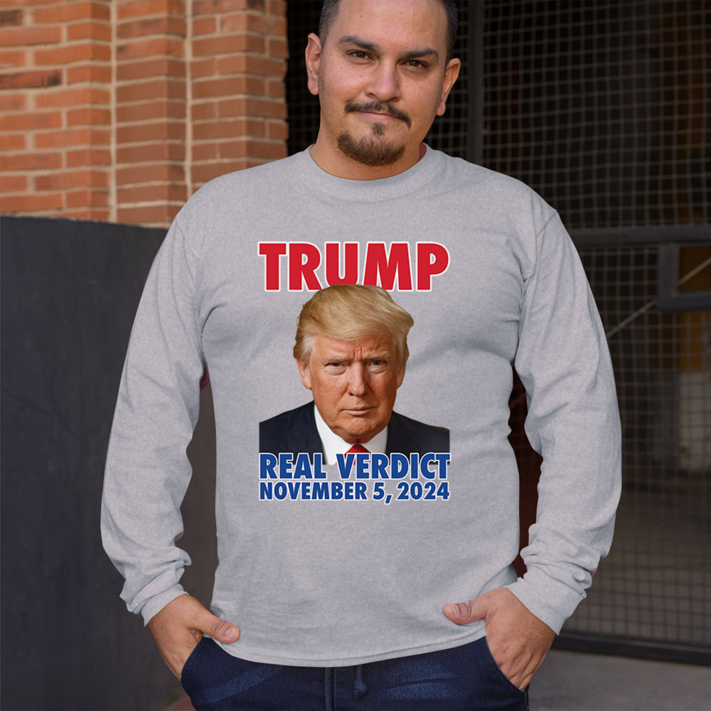 Show your support for Donald Trump with our bold "Real Verdict November 5, 2024" design. Perfect for Trump supporters, MAGA movement enthusiasts, and those who mock Biden with the "Let's Go Brandon" slogan.