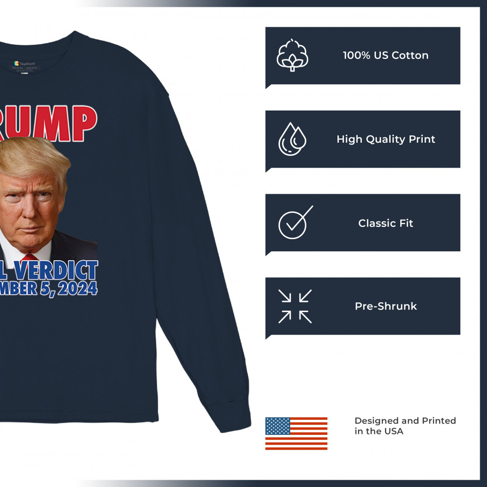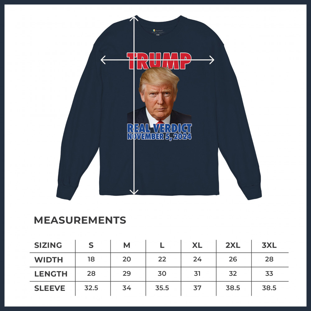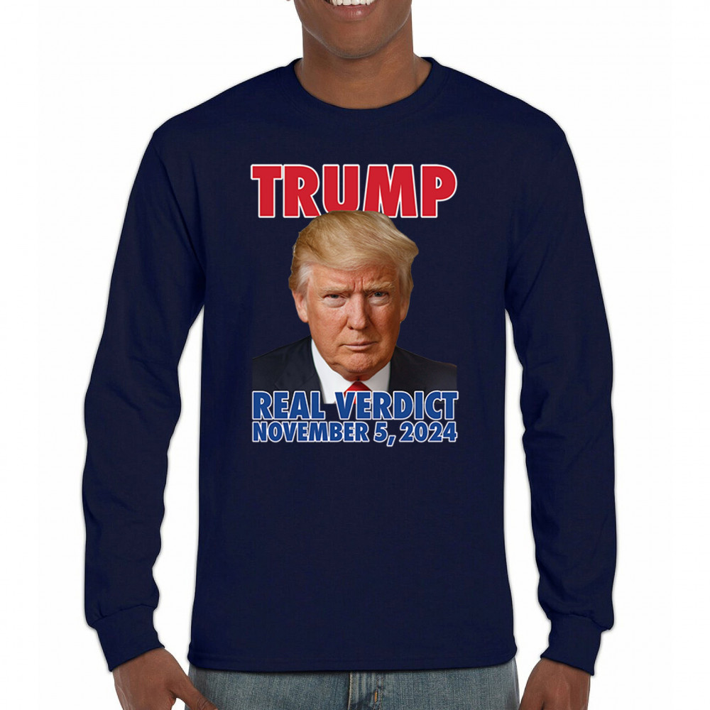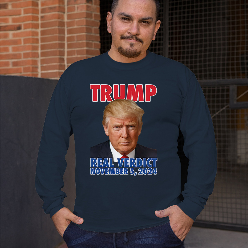 Show your support for Donald Trump with our bold "Real Verdict November 5, 2024" design. Perfect for Trump supporters, MAGA movement enthusiasts, and those who mock Biden with the "Let's Go Brandon" slogan.