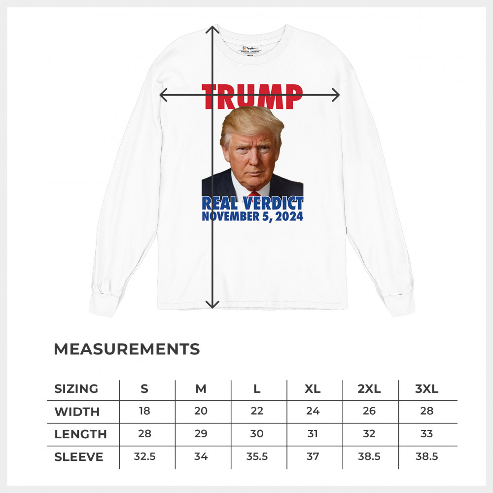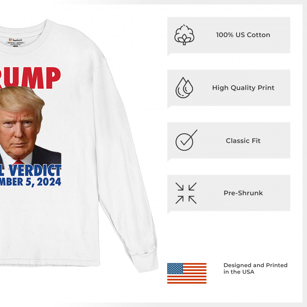Show your support for Donald Trump with our bold "Real Verdict November 5, 2024" design. Perfect for Trump supporters, MAGA movement enthusiasts, and those who mock Biden with the "Let's Go Brandon" slogan.