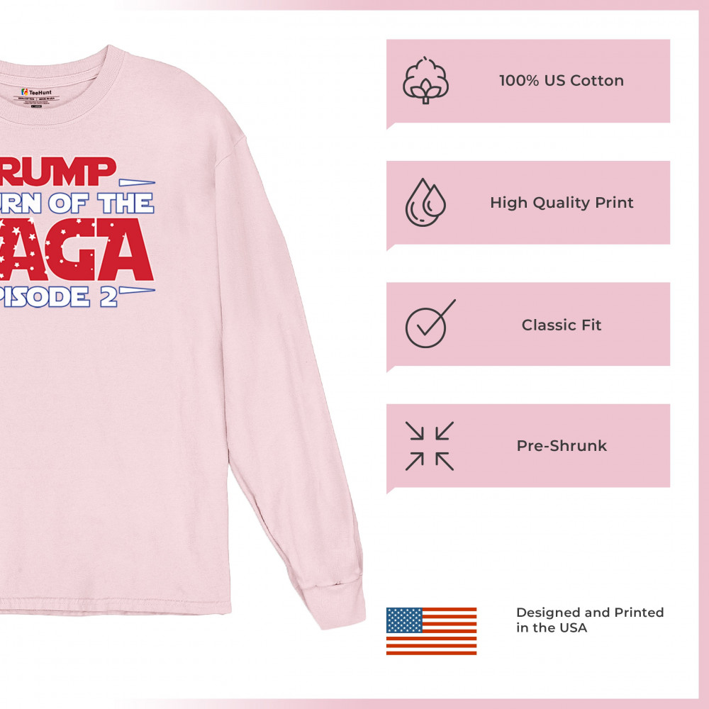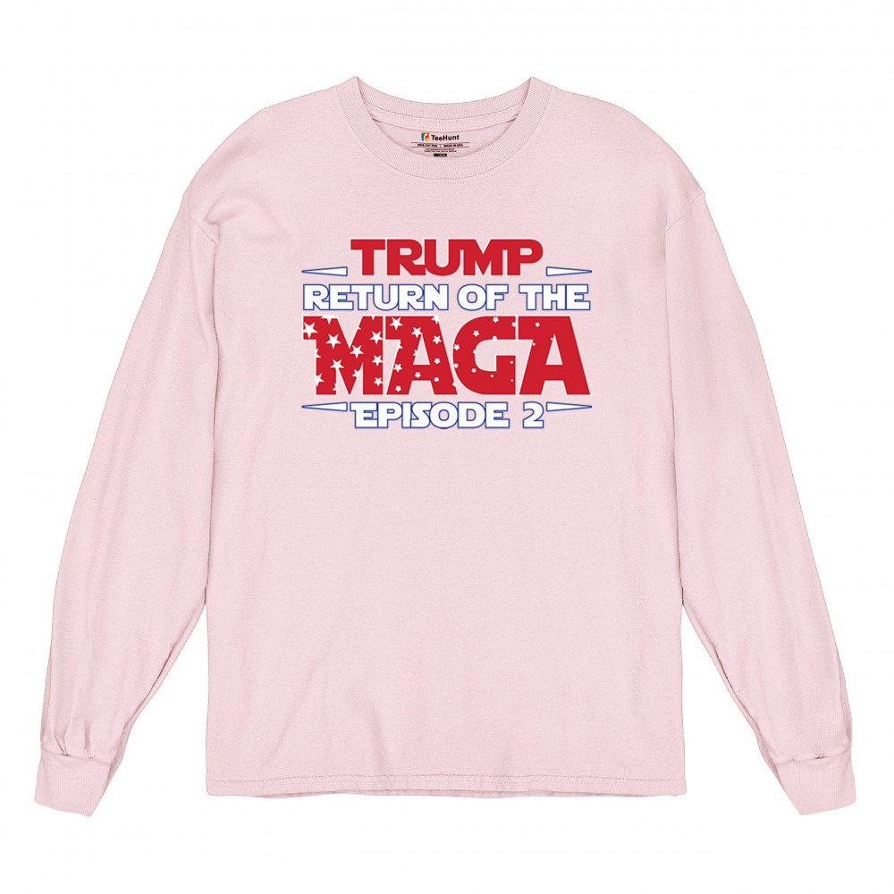 Make a bold statement with the "Return of the MAGA: Episode 2" design, celebrating Donald J. Trump and the Red Wave movement. Perfect for conservatives, Trump supporters, and Republicans who champion America First values, freedom, and the fight for a better future. A must-have for those who never surrender and stand for the people's mandate.