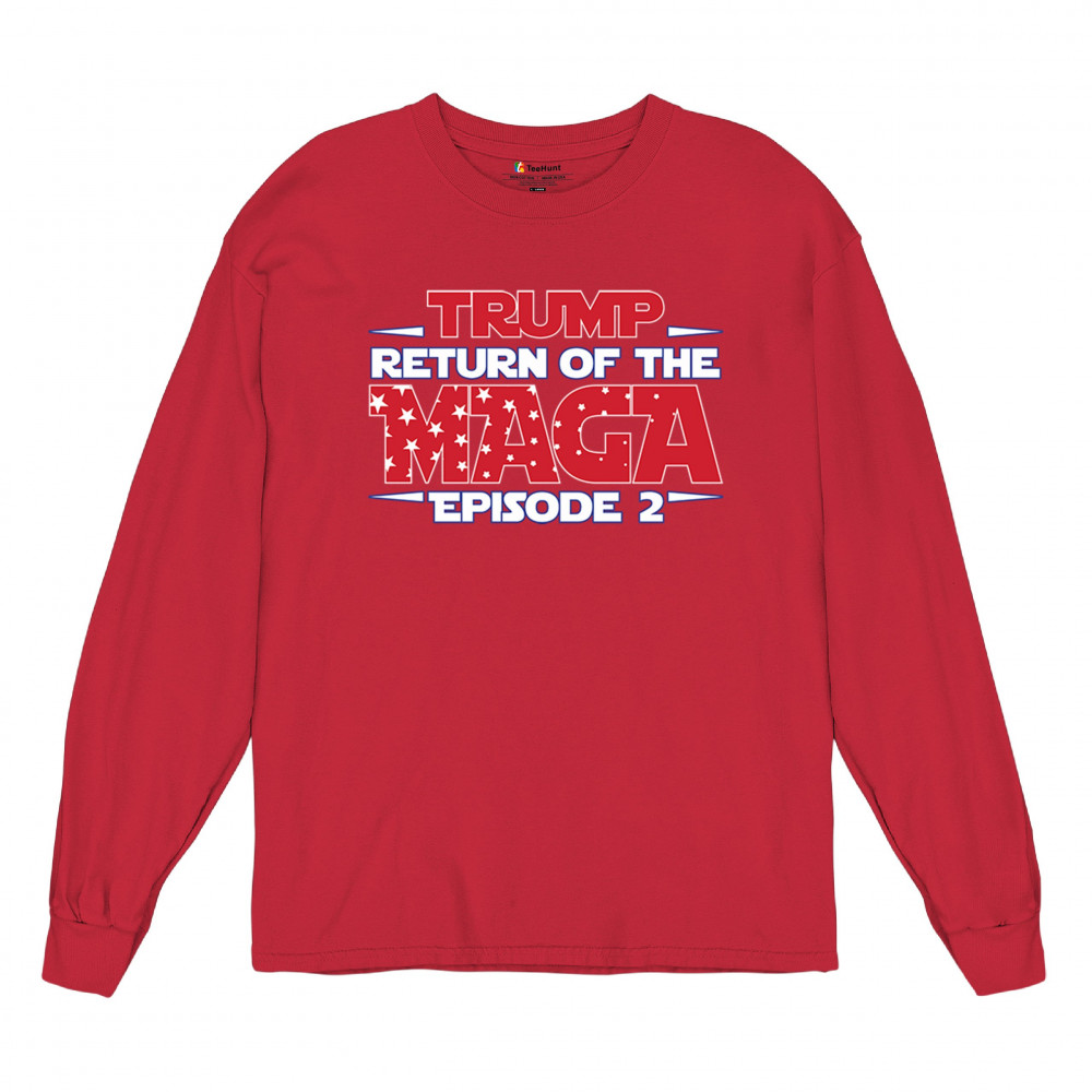 Make a bold statement with the "Return of the MAGA: Episode 2" design, celebrating Donald J. Trump and the Red Wave movement. Perfect for conservatives, Trump supporters, and Republicans who champion America First values, freedom, and the fight for a better future. A must-have for those who never surrender and stand for the people's mandate.