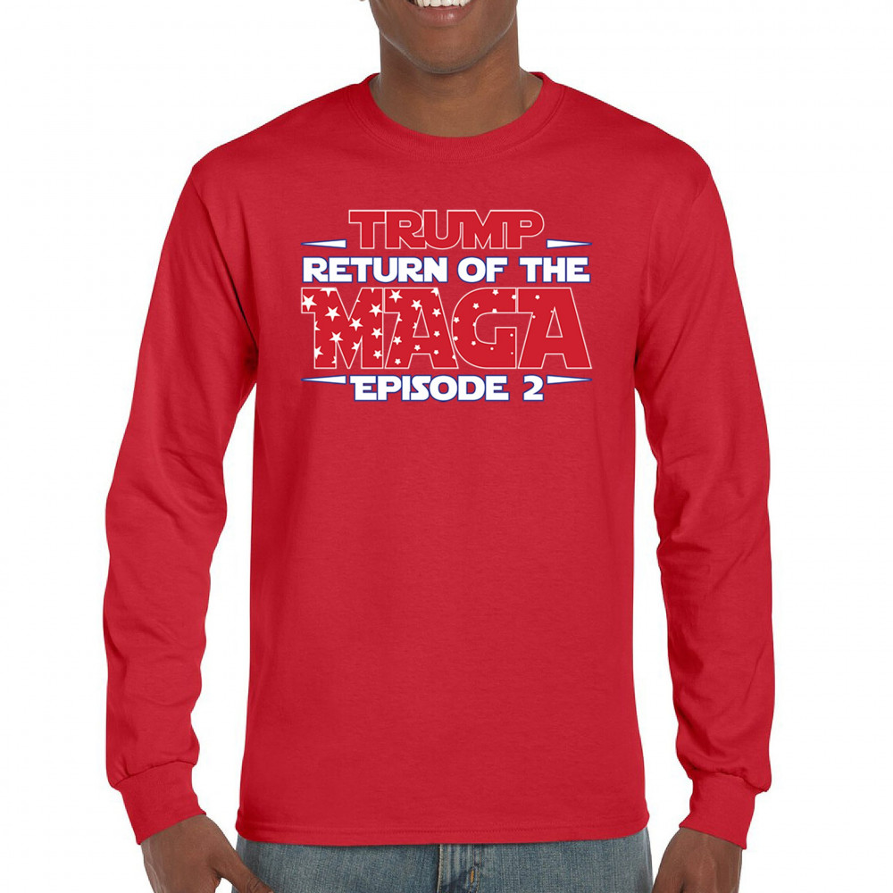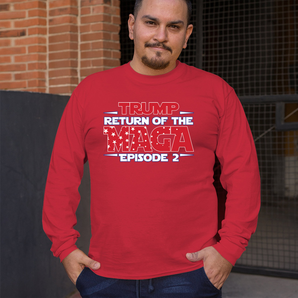 Join the "Return of the MAGA: Episode 2" movement. Celebrate Donald J. Trump, the Red Wave, and America First values with this bold design.