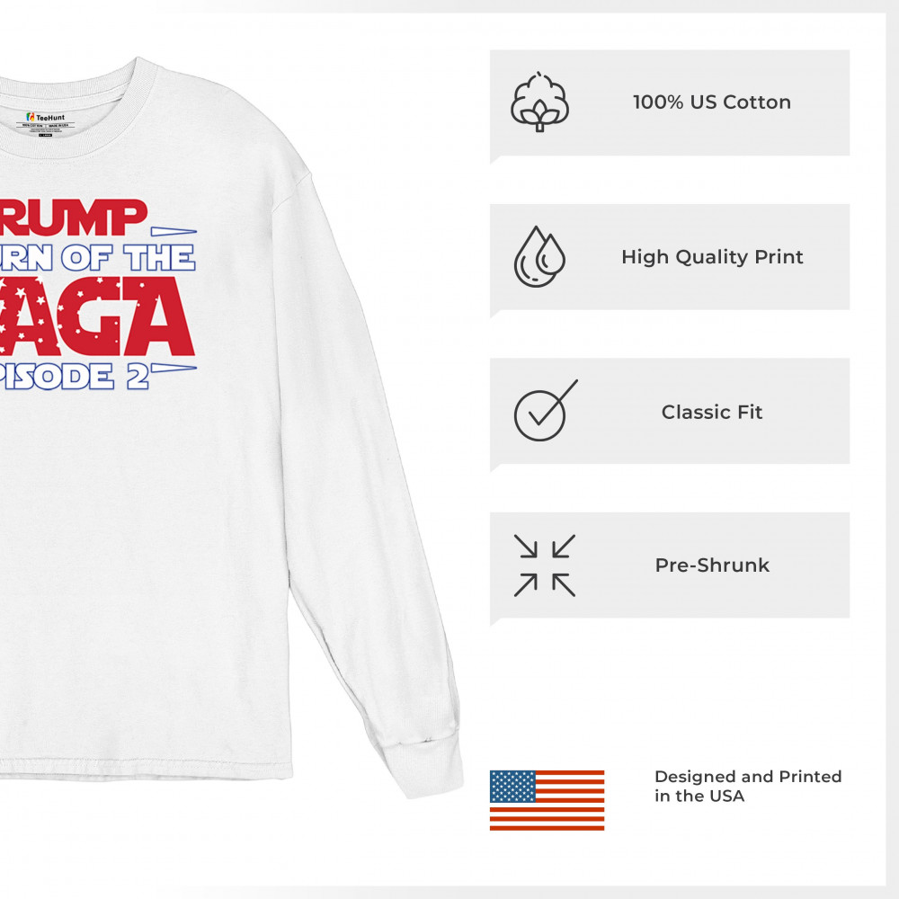 Join the "Return of the MAGA: Episode 2" movement. Celebrate Donald J. Trump, the Red Wave, and America First values with this bold design.