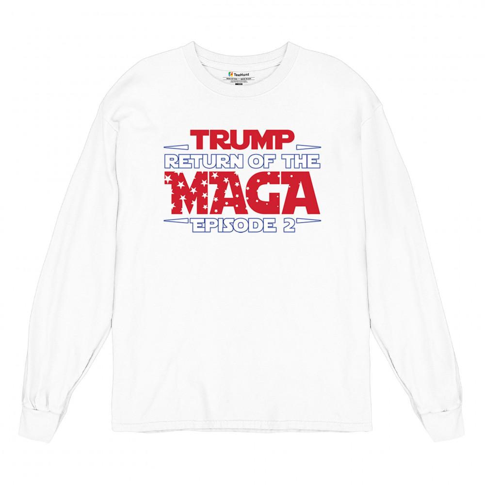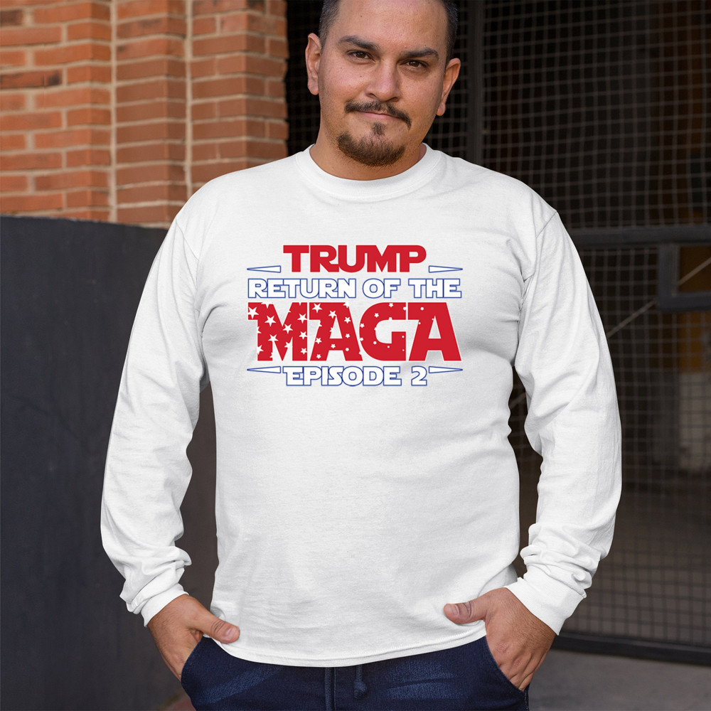 Make a bold statement with the "Return of the MAGA: Episode 2" design, celebrating Donald J. Trump and the Red Wave movement. Perfect for conservatives, Trump supporters, and Republicans who champion America First values, freedom, and the fight for a better future. A must-have for those who never surrender and stand for the people's mandate.