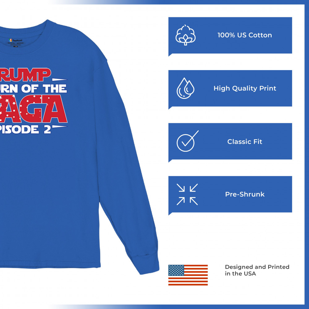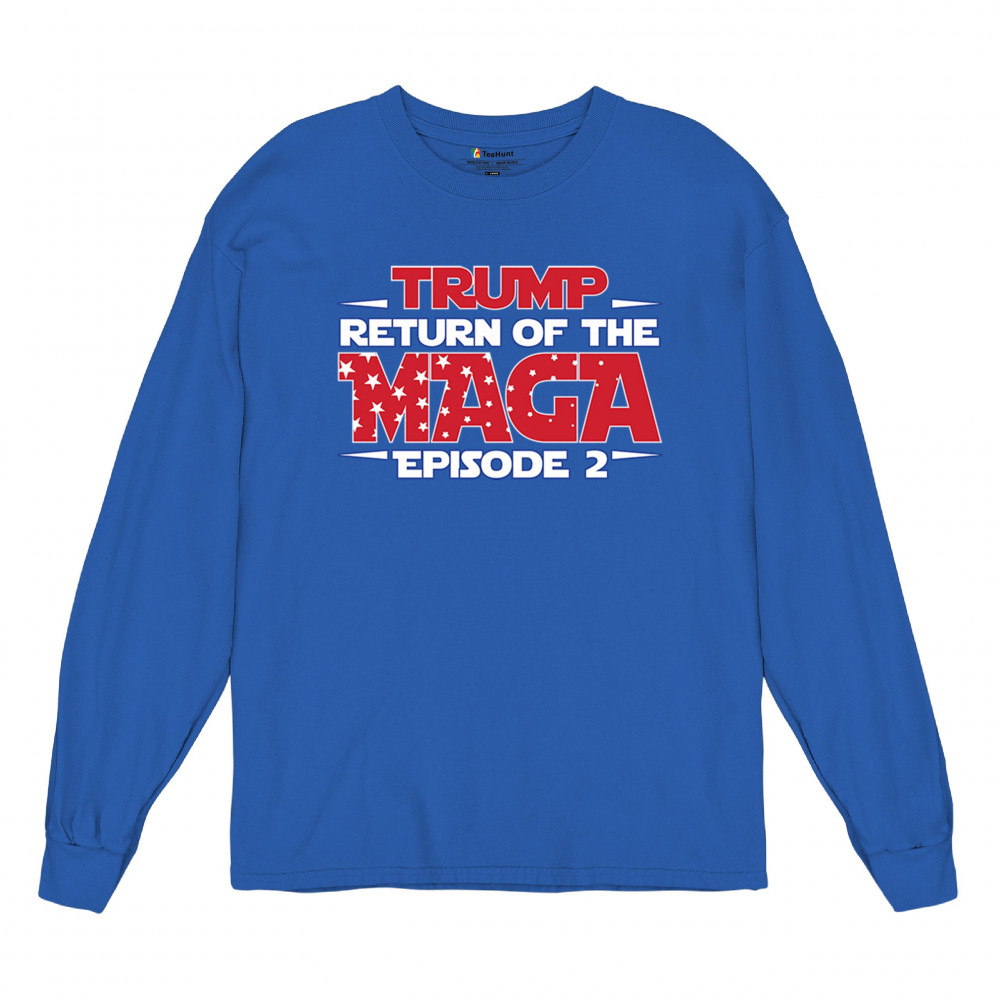 Join the "Return of the MAGA: Episode 2" movement. Celebrate Donald J. Trump, the Red Wave, and America First values with this bold design.