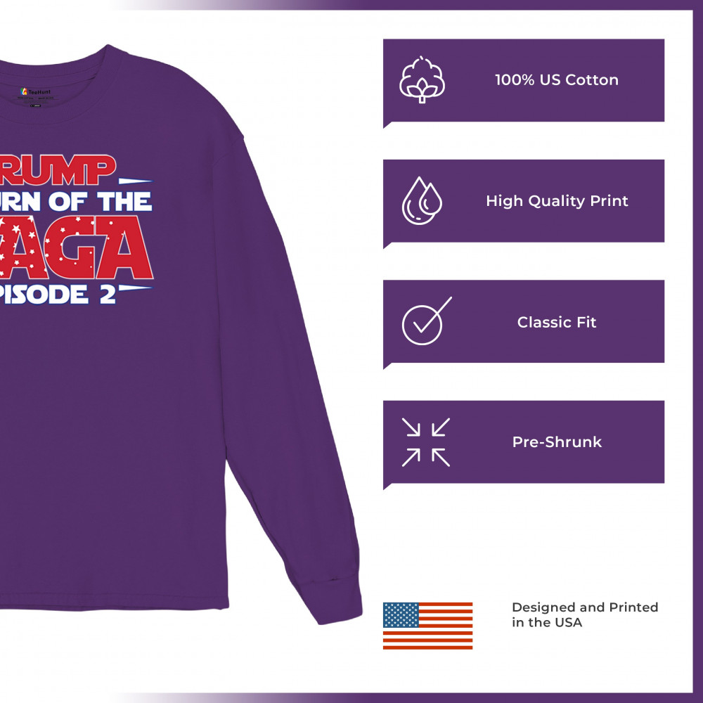 Make a bold statement with the "Return of the MAGA: Episode 2" design, celebrating Donald J. Trump and the Red Wave movement. Perfect for conservatives, Trump supporters, and Republicans who champion America First values, freedom, and the fight for a better future. A must-have for those who never surrender and stand for the people's mandate.