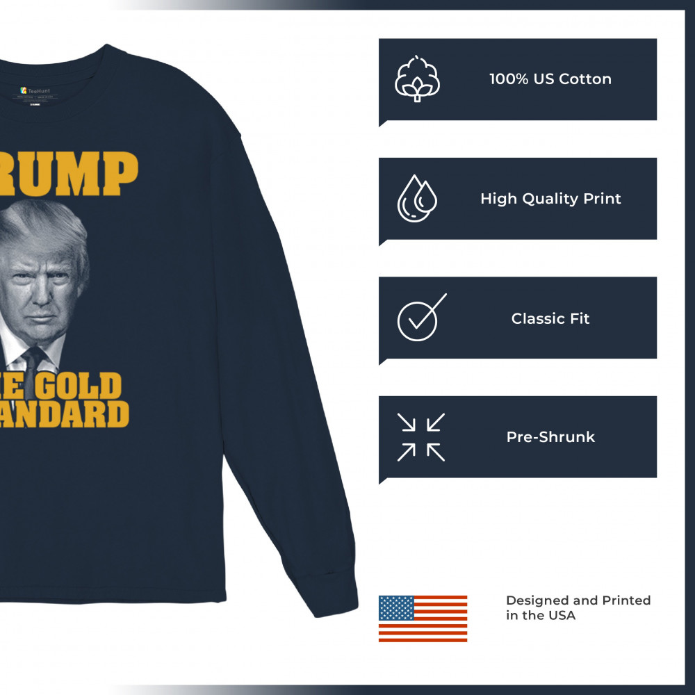 Stand tall with our striking 'Trump The Gold Standard' design, representing the pinnacle of American leadership and excellence. Show your unwavering support as a dedicated Trump supporter and conservative patriot. Ride the victory train towards a brighter future, rallying under the American flag. Trust in God, not in the deceitful government, and let your apparel reflect your commitment to the Republican cause. Join the rebelution against traitors and refuse to surrender to the forces of tyranny. Wear it proudly and declare your allegiance to America first.