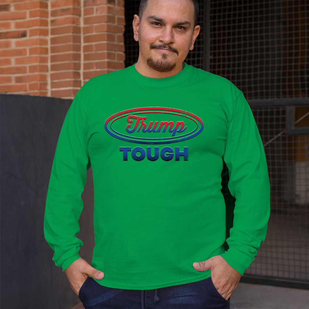 Embrace the "Trump Tough" spirit—show your support for conservative values, America first, and the American flag. Perfect for rallies or daily wear.