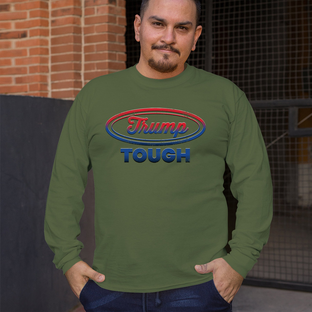 Embrace the "Trump Tough" spirit—show your support for conservative values, America first, and the American flag. Perfect for rallies or daily wear.