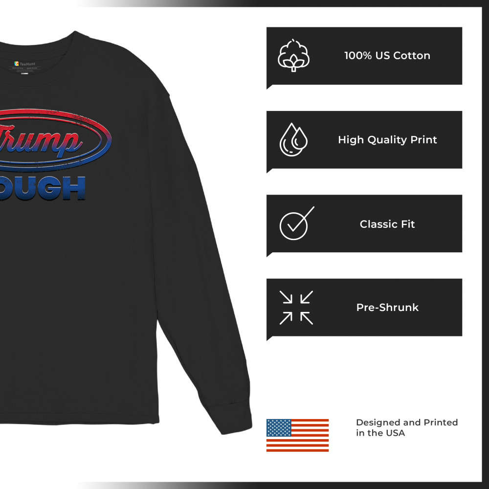 Embrace the "Trump Tough" spirit—show your support for conservative values, America first, and the American flag. Perfect for rallies or daily wear.