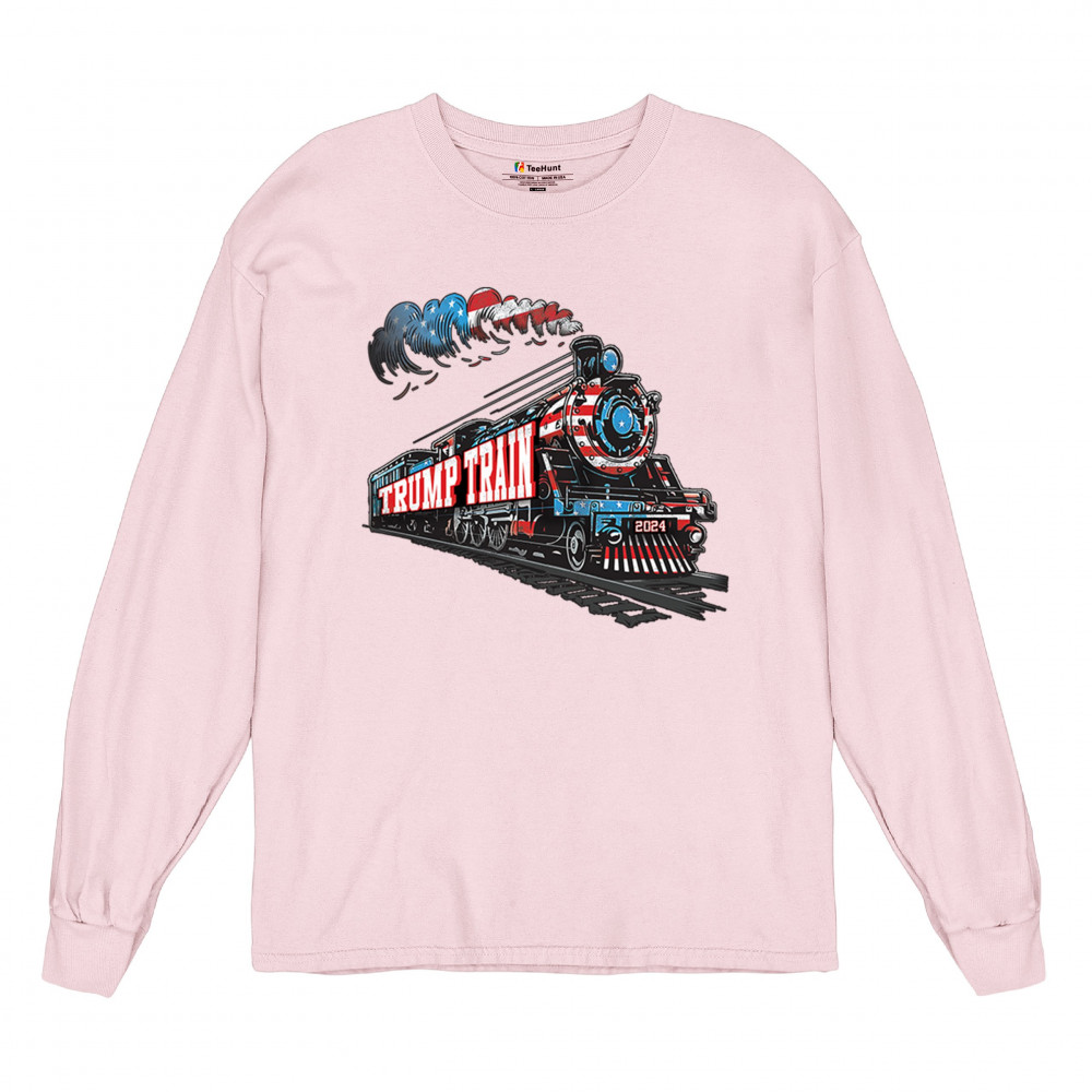 Hop on the Trump Train and support America First! This bold, patriotic tee is perfect for Republicans, conservatives, and the Red Wave movement.