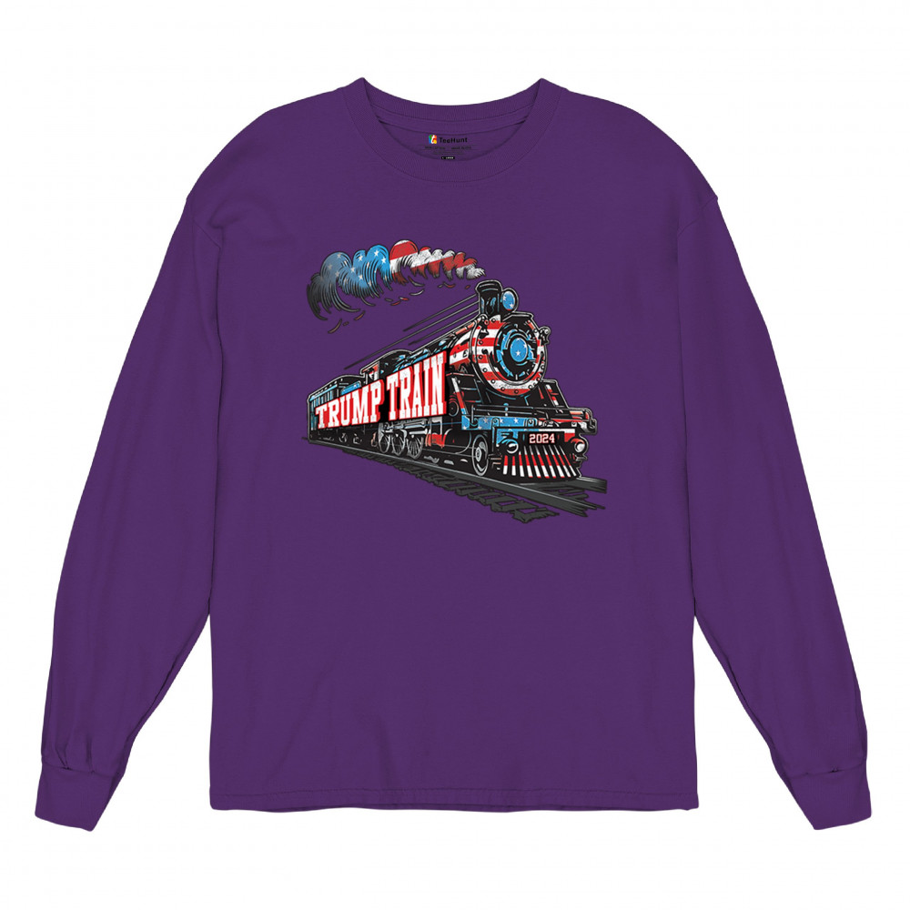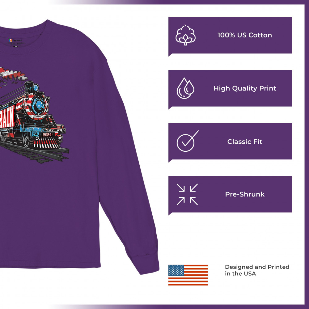 Celebrate the Trump Train with this bold, patriotic design. Featuring a steam engine wrapped in the American flag, this tee is perfect for Trump supporters and conservatives looking to make a statement. Join the Red Wave, fight for victory, and showcase your support for the 47th President. Whether at rallies or casual events, this design represents we the people have spoken and the push for 4 More Years.