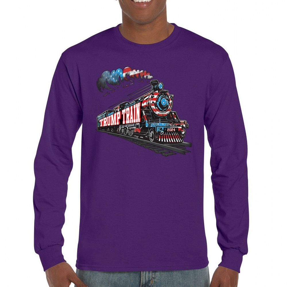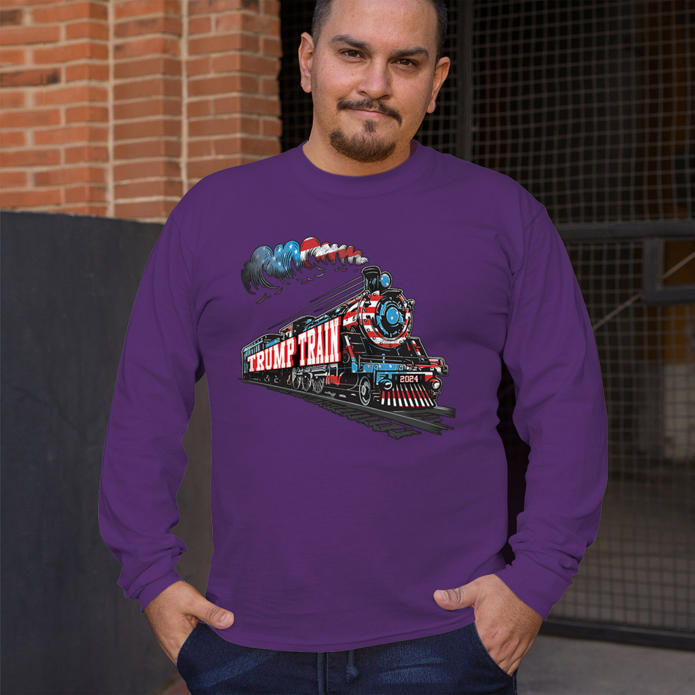 Hop on the Trump Train and support America First! This bold, patriotic tee is perfect for Republicans, conservatives, and the Red Wave movement.