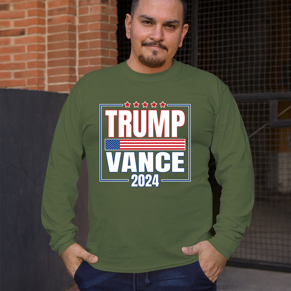 Show your support for Trump-Vance 2024 with this bold design. Perfect for rallies and everyday wear, it represents resilience and strong leadership.