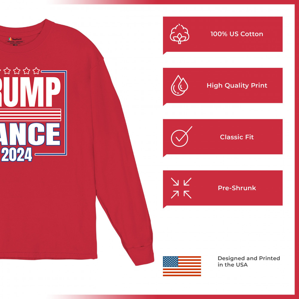Show your support for Trump-Vance 2024 with this bold design. Perfect for rallies and everyday wear, it represents resilience and strong leadership.