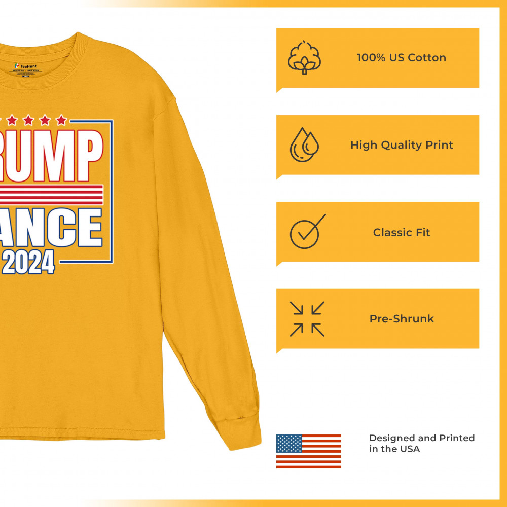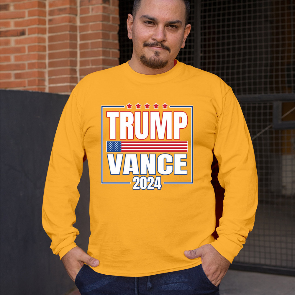 Show your support for Trump-Vance 2024 with this bold design. Perfect for rallies and everyday wear, it represents resilience and strong leadership.
