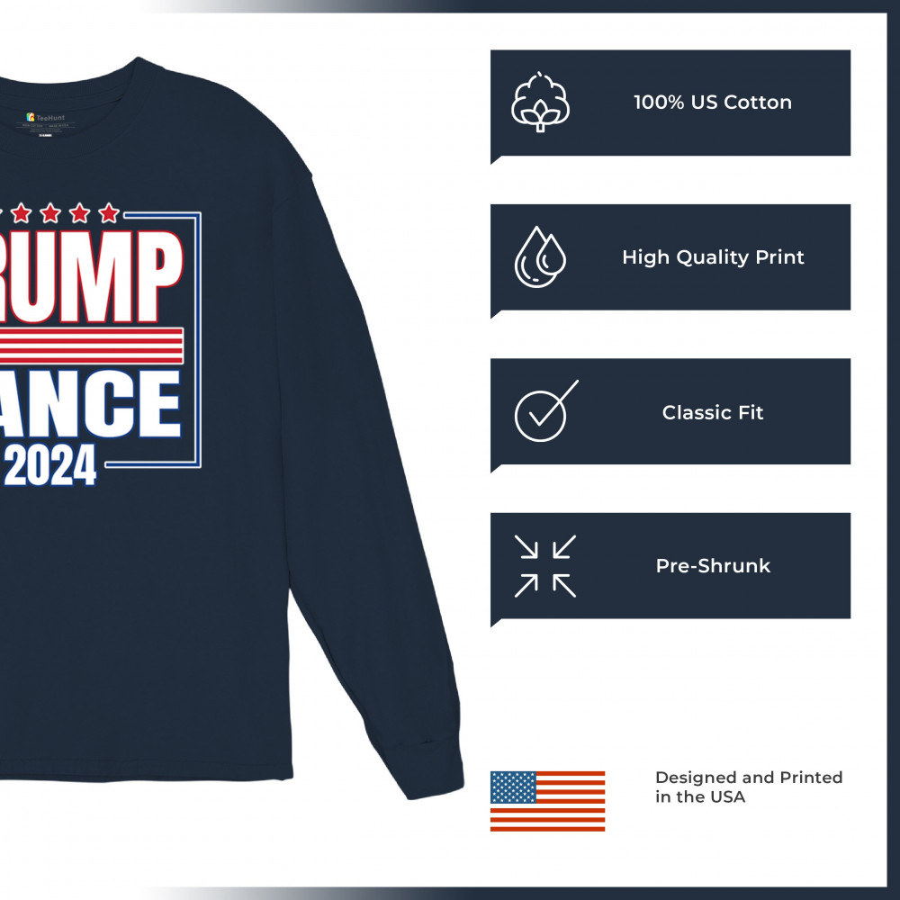 Show your support for Trump-Vance 2024 with this bold design. Perfect for rallies and everyday wear, it represents resilience and strong leadership.