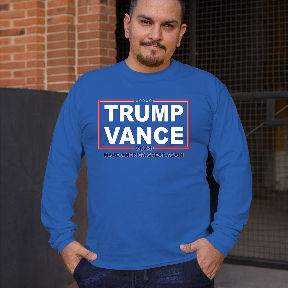 Support Trump-Vance 2024 with this bold design. Perfect for rallies and political events. Show your American pride and conservative values.