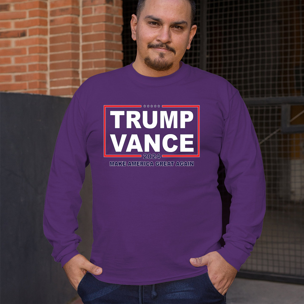 Support Trump-Vance 2024 with this bold design. Perfect for rallies and political events. Show your American pride and conservative values.