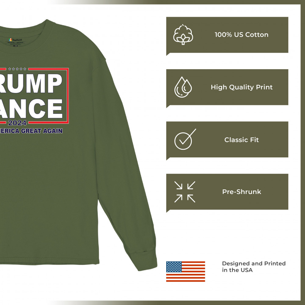Support Trump-Vance 2024 with this bold design. Perfect for rallies and political events. Show your American pride and conservative values.
