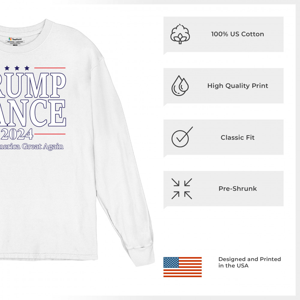 Show your support with the "Trump Vance 2024" design, perfect for rallies and patriotic events. Express your conservative values with pride.