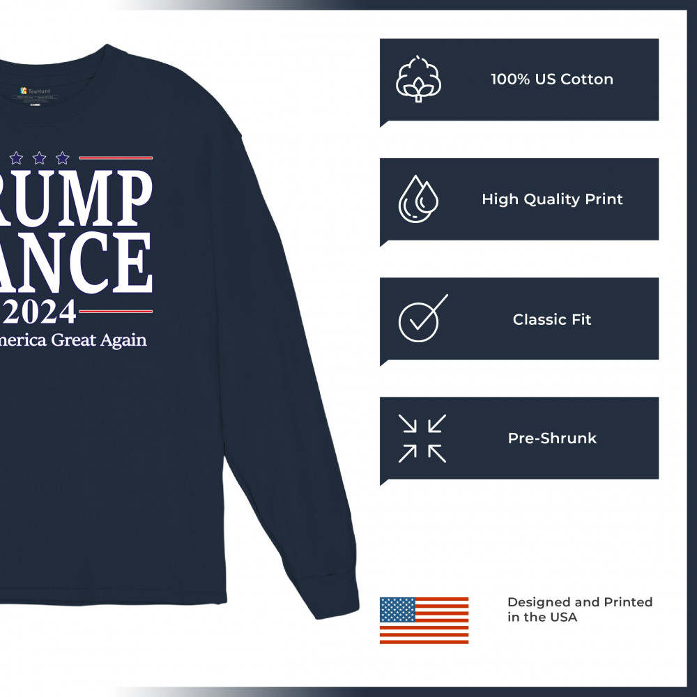 Show your support with the "Trump Vance 2024" design, perfect for rallies and patriotic events. Express your conservative values with pride.