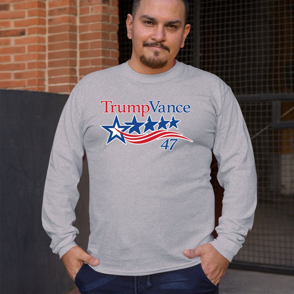 Patriotic "Trump Vance 47" design celebrating America First, conservative values, and the Red Wave, supporting Donald J. Trump as the 47th President.